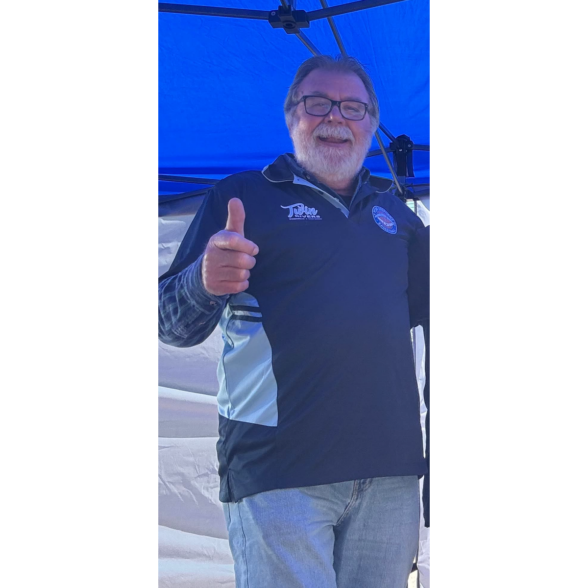 In the club colours of navy/sky blue, with the PSBA logo on the front left and the Twin Rivers logo on the front right. Lightweight micro knit fabric, designed for performance.
